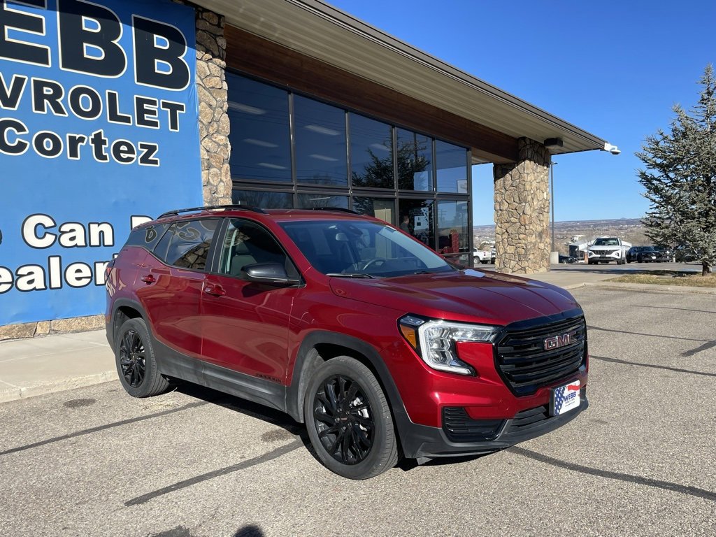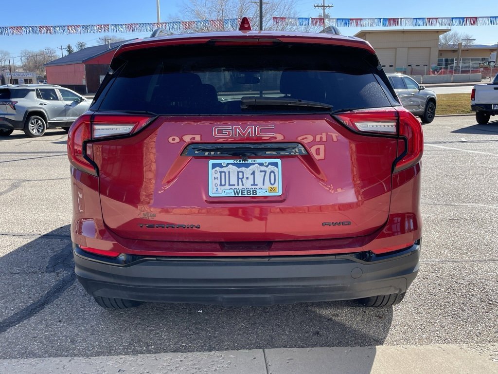 Volcanic Red Tintcoat 2024 GMC Terrain SLE AWD 9-Speed Automatic 1.5L DOHC AWD, 2 USB Data Ports w/Auxiliary Input Jack, 4-Way Manual Front Passenger Seat, 6-Speaker Audio System Feature, 8-Way Power Driver Seat Adjuster, Auto-dimming Rear-View mirror, Black GMC Center Caps w/Red GMC Lettering, Black Mirror Caps, Bluetooth® For Phone, Brake assist, Darkened Front Grille, Driver & Front Passenger Heated Seats, Driver Convenience Package, Driver vanity mirror, Dual-Zone Automatic Climate Control, Electronic Stability Control, Elevation Edition, Emergency communication system: OnStar and GMC connected services capable, Front Bucket Seats, Front Center Armrest, Fully automatic headlights, Heated door mirrors, Outside temperature display, Overhead console, Passenger vanity mirror, Power door mirrors, Power Driver Lumbar Control, Power Programmable Rear Liftgate, Power windows, Preferred Equipment Group 3SA, Premium Cloth Seat Trim, Radio: GMC Infotainment Audio System w/7 Display, Rear window wiper, Remote keyless entry, Remote Start, Roof-Mounted Luggage Rack Side Rails, Security system, SiriusXM, Speed control, Steering wheel mounted audio controls, Tilt steering wheel, Wheels: 19 Gloss Black Aluminum, Wireless Apple CarPlay/Wireless Android Auto.
